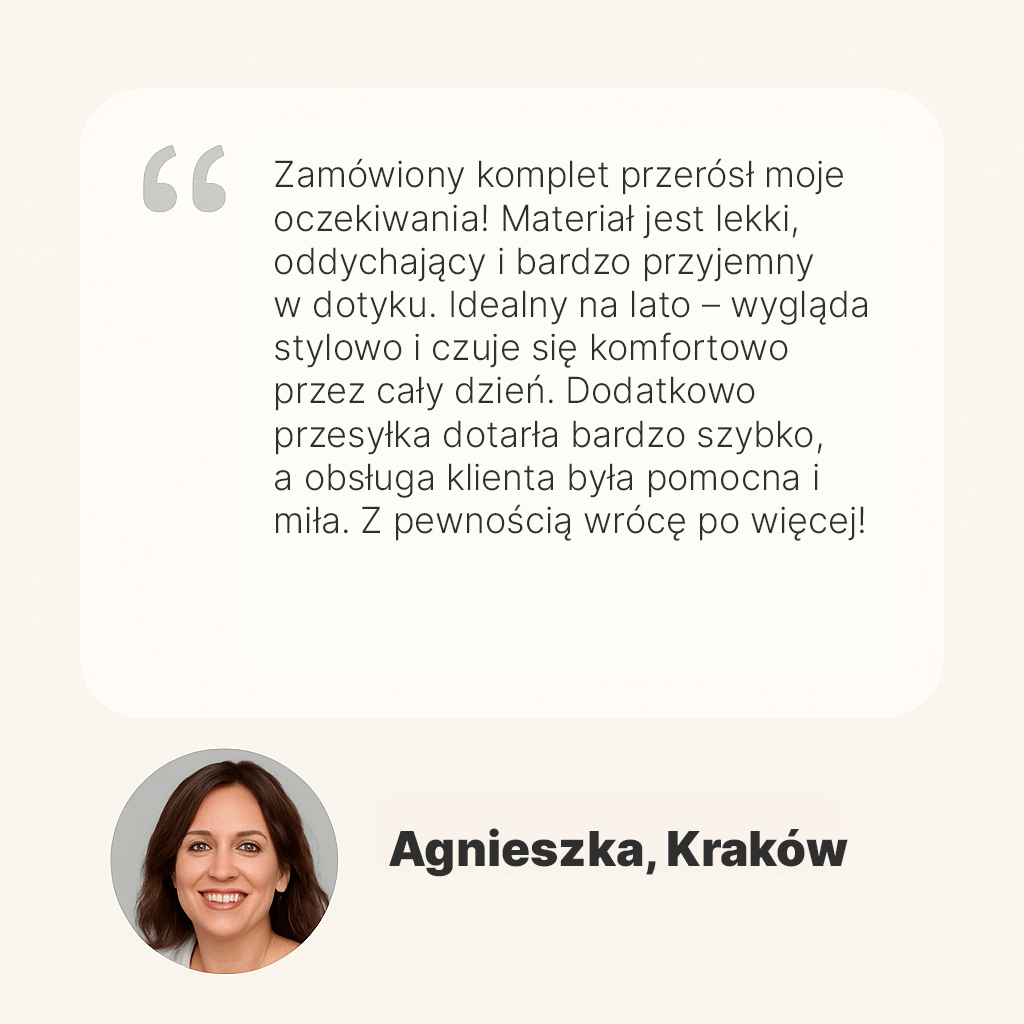 Ten komplet z naturalnego lnu to idealna propozycja na lato – zarówno na co dzień, jak i na wyjazd. Oversize’owa koszula i luźne spodnie tworzą stylowy total look bez wysiłku.
